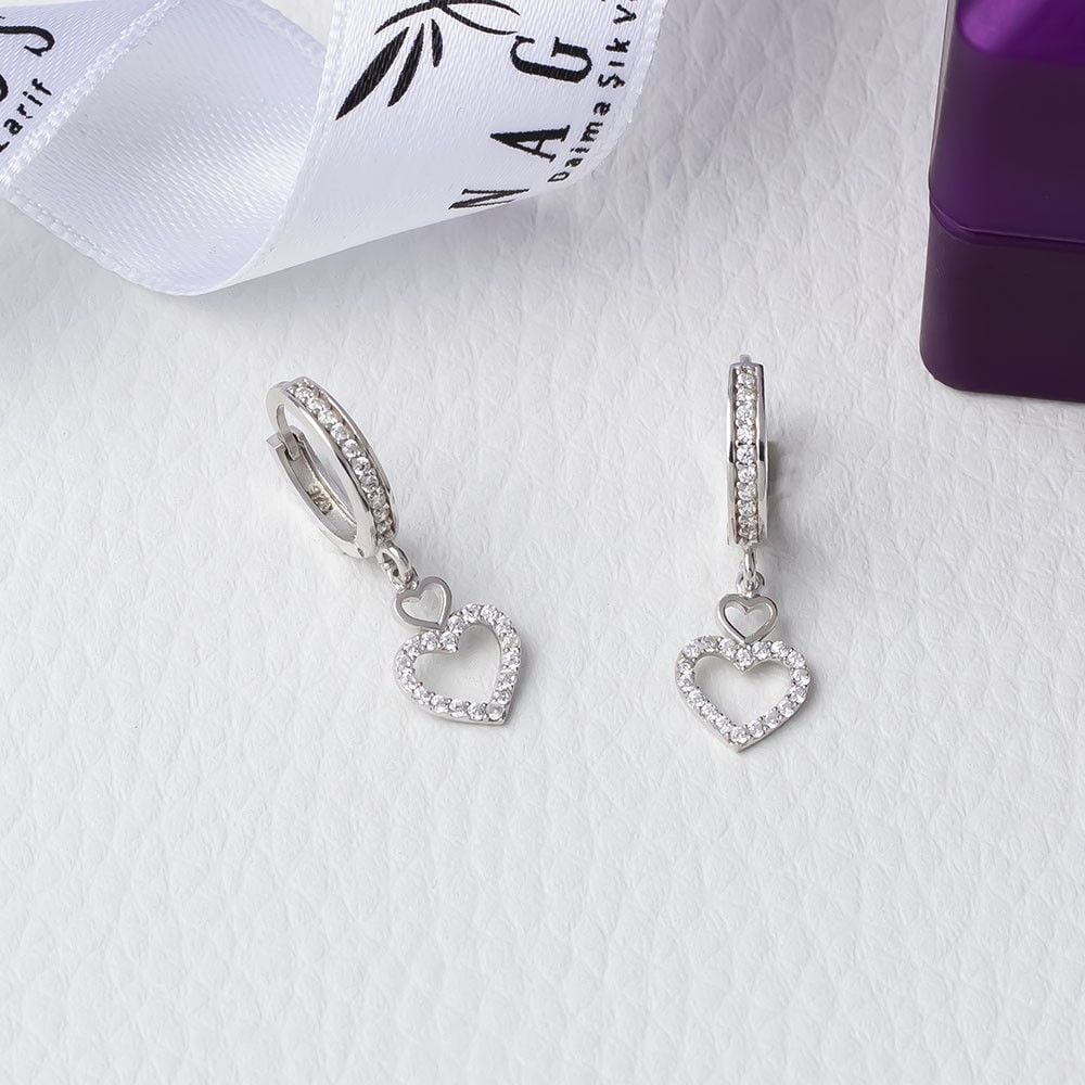 Kalp Model Zirkon Taşlı 925 Ayar Gümüş Kadın Küpe
