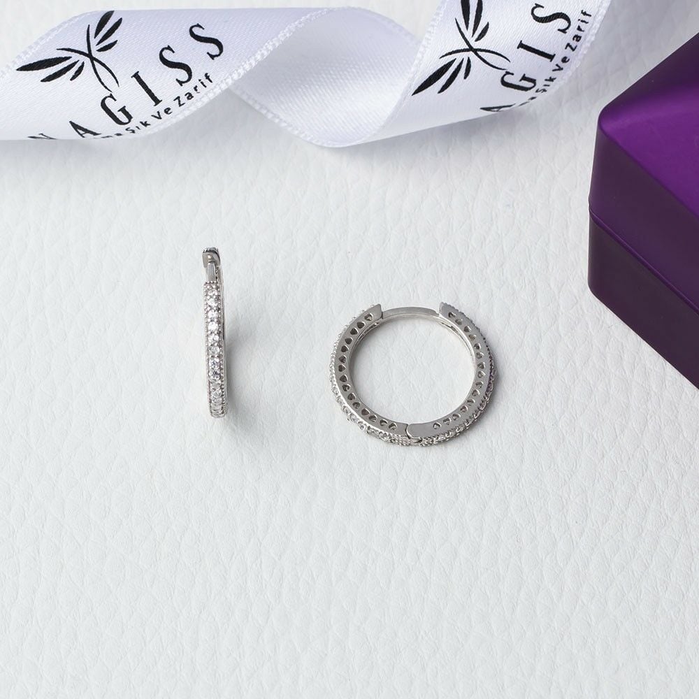 3 mm Baget Taşlı 925 Ayar Gümüş 20 mm Kadın Halka Küpe