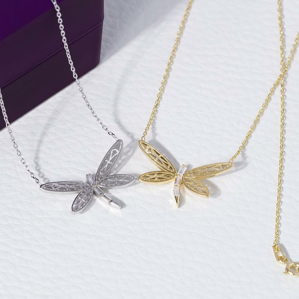 Minik Kelebekler Zirkon Taşlı 925 Ayar Gümüş Kadın Kolye