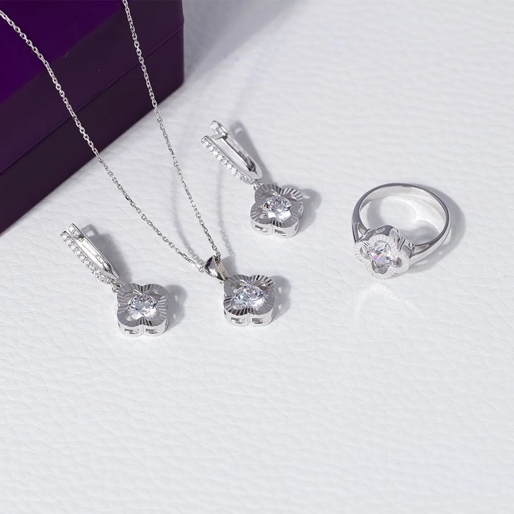 Yonca Detaylı Levha Model Zirkon Taşlı 925 Ayar Gümüş Kadın Kolye