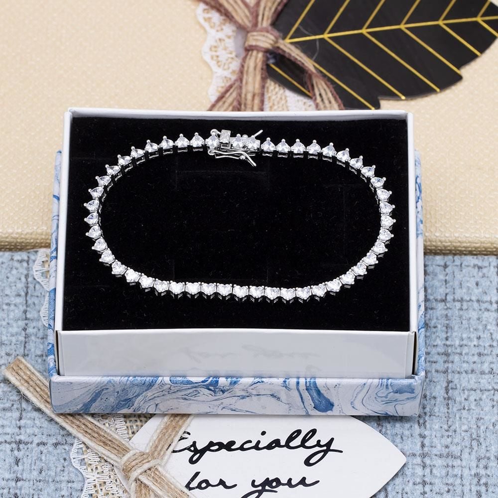 Kalp Model Zirkon Taşlı 925 Ayar Gümüş Kadın Bileklik