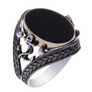 925 Ayar Gümüş Oniks Taşlı Çapa Detaylı Erkek Yüzük